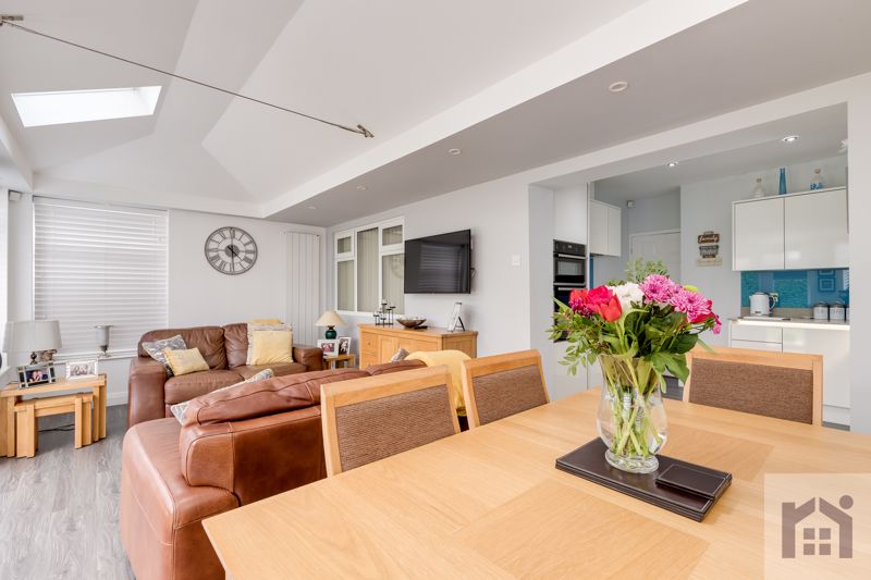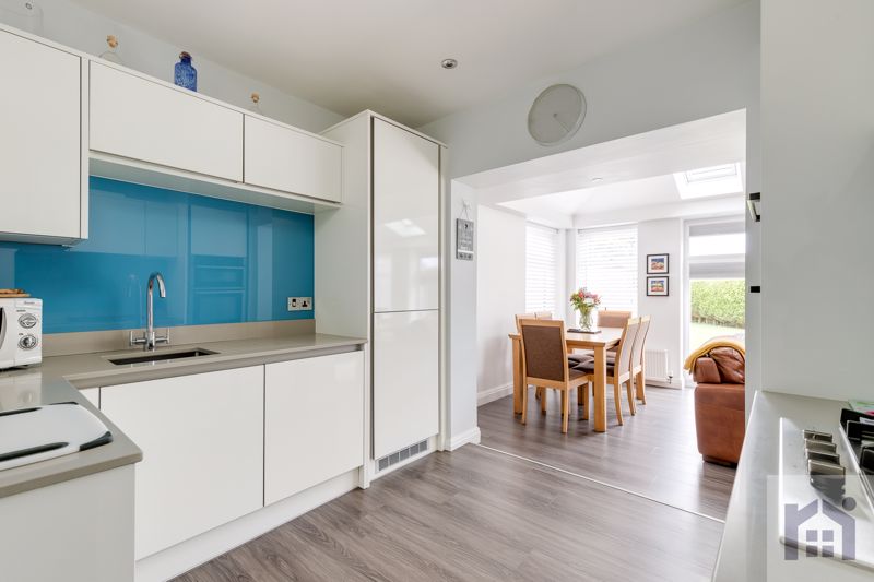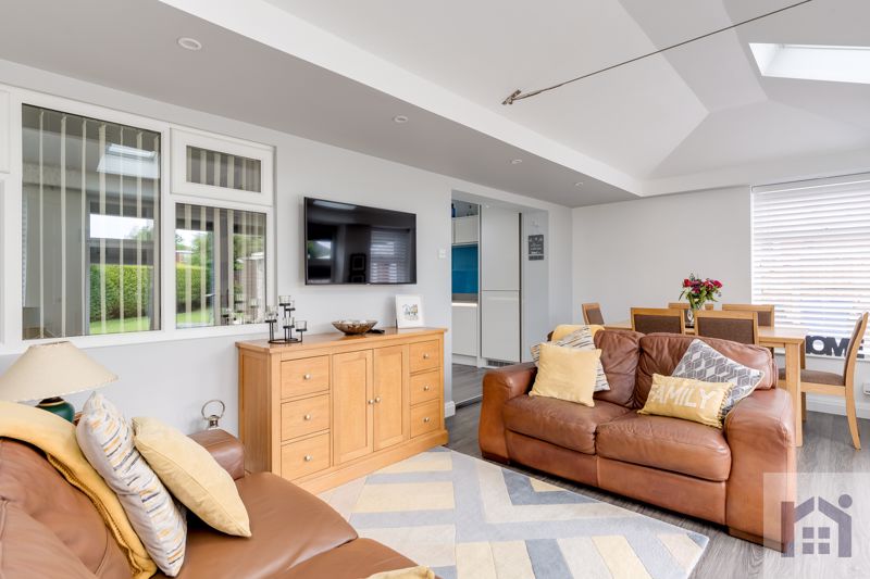 To the front the driveway can accommodate several vehicles and a caravan or motorhome and leads to the main entrance.  Step into the welcoming hallway and head to the spacious lounge with remote controlled living flame gas fire.  The stylish kitchen comprises a range of wall and base units with quartz worksurfaces, etched drainer and integrated appliances including refrigerator, freezer, washing machine, gas hob and double electric oven and grill.