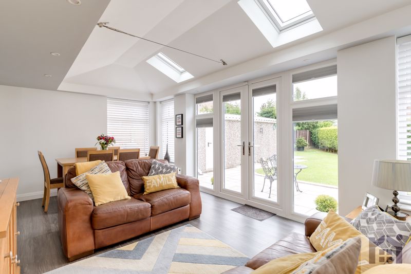 A large archway leads through to the orangery, which is a fabulous space, awash with natural light and with plenty of room for dining and casual furniture.