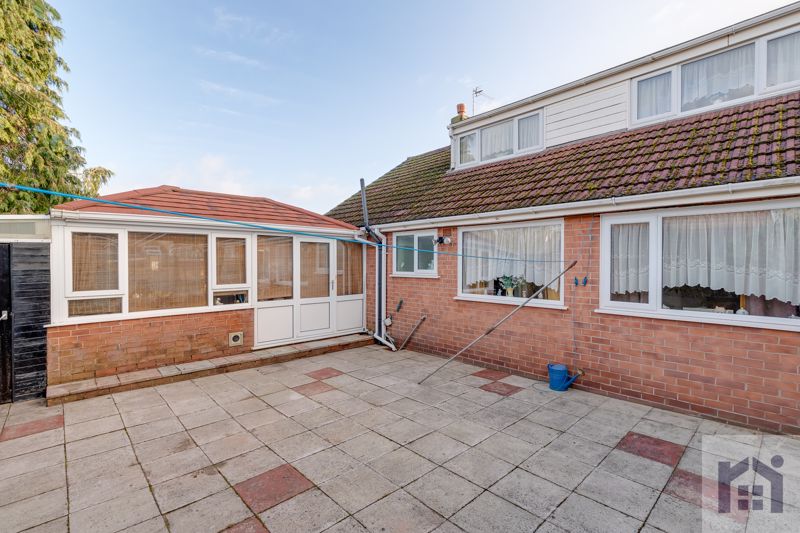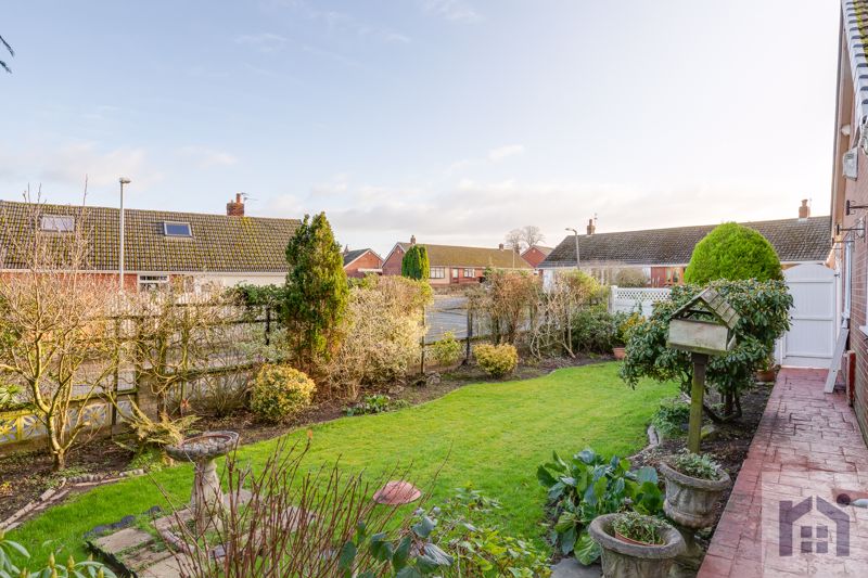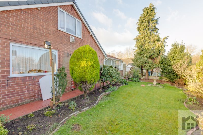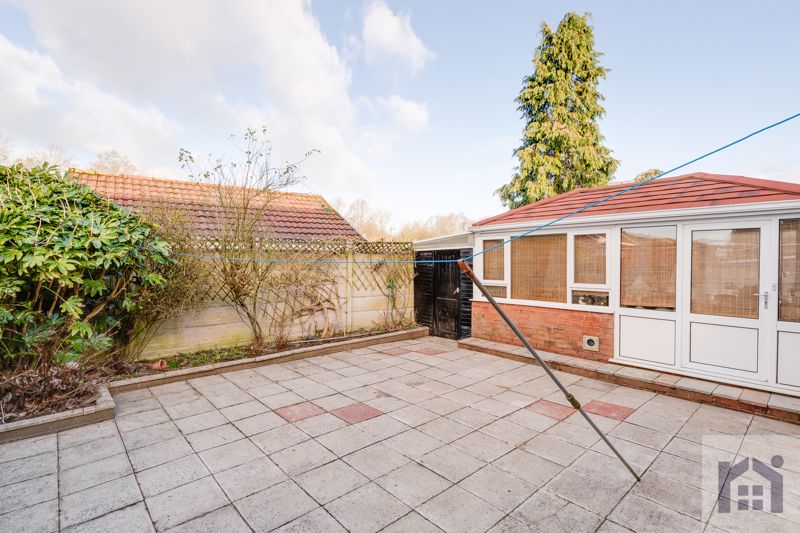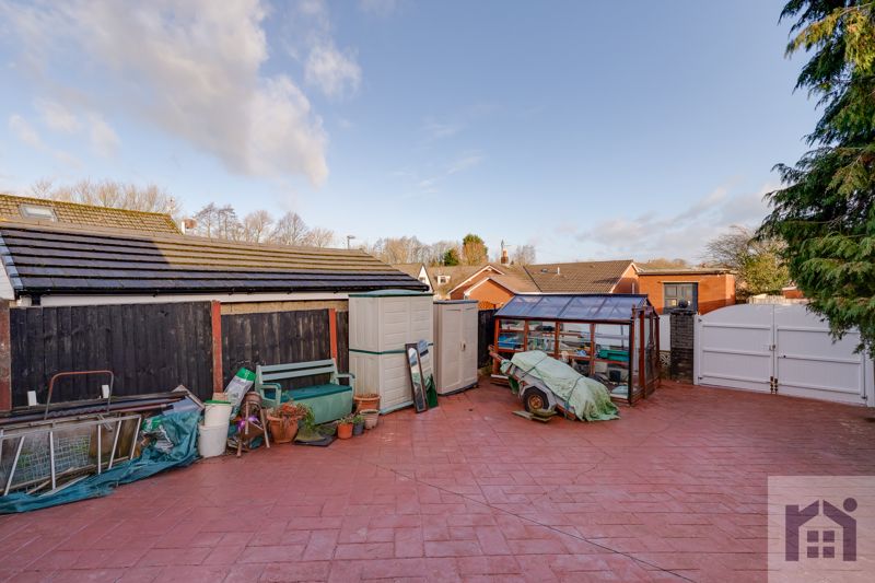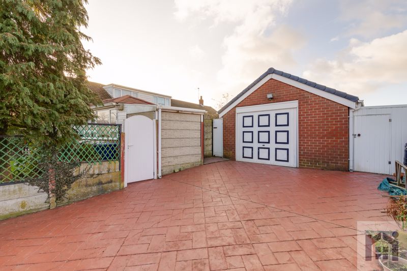 Step outside into the flagged and low maintenance rear garden which is a lovely private space in which to relax and entertain. A potting shed gives access to the large detached garage and secure driveway with ample space to accommodate a caravan, motorhome or several vehicles. To the side is a delightful garden with lawn bordered by mature shrubs including magnolia and azalea.
