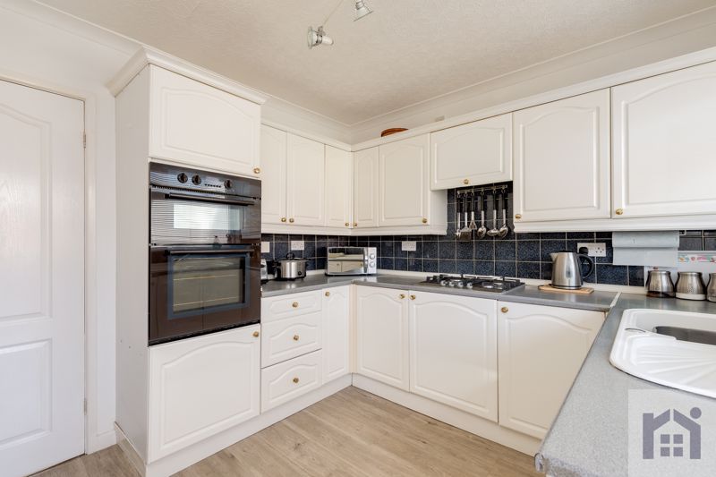 To the front the block paviour driveway leads to the main entrance. Step into the hallway and from there to the bright and spacious lounge with gas fire. The kitchen comprises a range of wall and base units with double electric oven and grill and gas hob with extractor over. Leading off is the garden room, which is normally used for dining and has space, power and plumbing for other appliances.