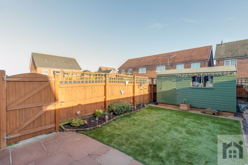 Step out onto the Indian stone terrace leading to the lazy lawn and shed with power, light and insulation.  Whilst this garden is low maintenance it is a haven for birds and is regularly visited by no less than three hedgehogs.