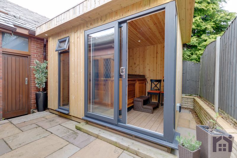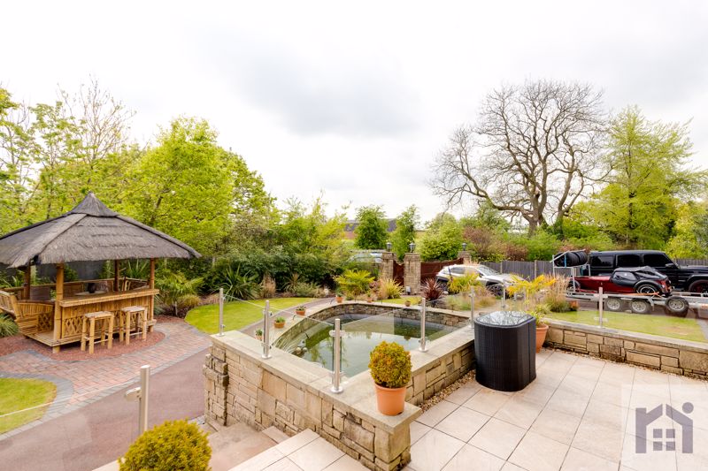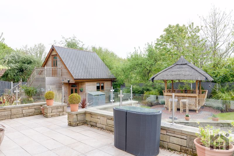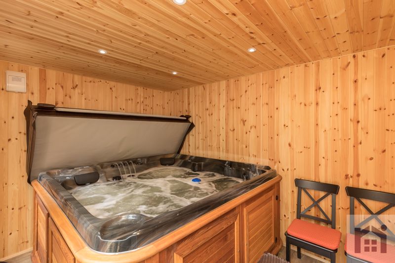 Now to the outside.  With its main orientation to the south, Glenways has gardens to three sides so you can take advantage of whatever the weather holds.  The landscaped gardens have a number of terraces and seating areas, lawns bordered by mature planting, and koi carp pond which is eight feet deep in the middle and dog run.  The outbuildings are just as impressive with two storey gymnasium, hot tub house which would also make an excellent home office for those who like the short walk to work.  The garage has workshop and upper storey storage facilities as well as electrically operated roller door and ramp to store and work on any vehicle projects.