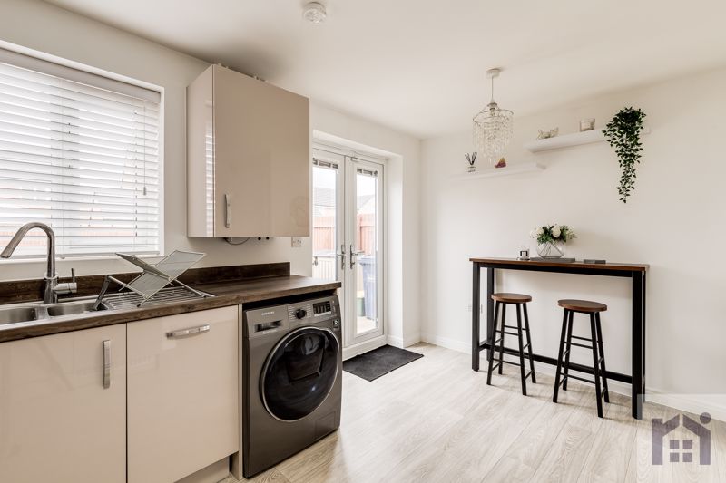 To the front the spacious lounge offers a warm welcome and plenty of space to be comfortable and relax. To the rear the kitchen diner has a range of wall and base units with complementary work surfaces and a range of fitted appliances including gas hob with extractor over, electric oven and grill, dishwasher, fridge and freezer. Patio doors open out on to the garden which is mainly laid to lawn with patio areas.