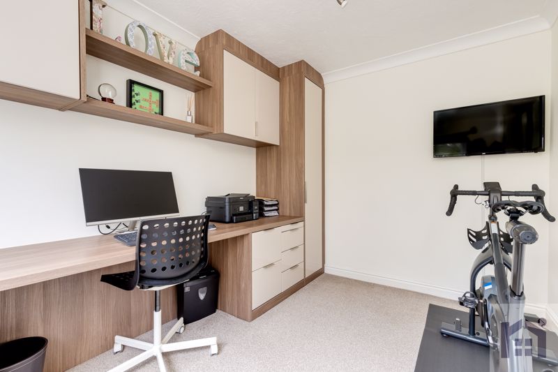 The driveway offers parking for several vehicles and leads to the detached garage and electric vehicle charging point.  Step into the welcoming hallway with oak flooring and glass and oak staircase leading off and cloakroom comprising wc and wash hand basin.  To the left is the bespoke study with a range of built in storage units and desk making it the perfect place to work from home.