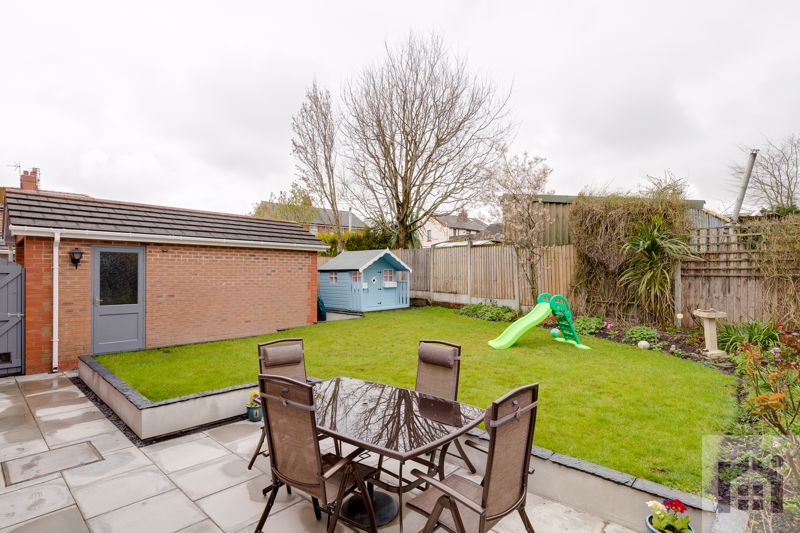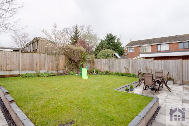 Outside the west facing garden is mainly laid to lawn bordered by mature shrubs and sun terrace.
